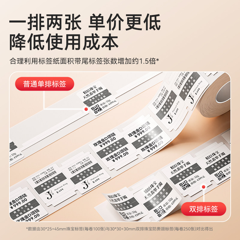 防拆 B3S 防伪 珠宝饰品标签纸打印纸防撕毁吊牌不干胶热敏首饰眼镜手镯耳钉价格贴纸定制 B31 精臣B21
