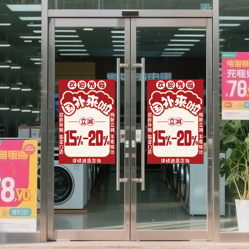 手机店数码 饰贴纸 3C国补政府补贴15%到20%海报广告贴画玻璃门墙装