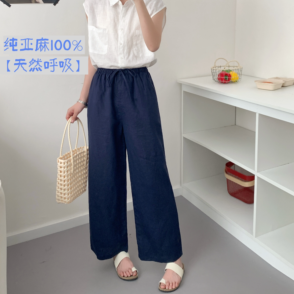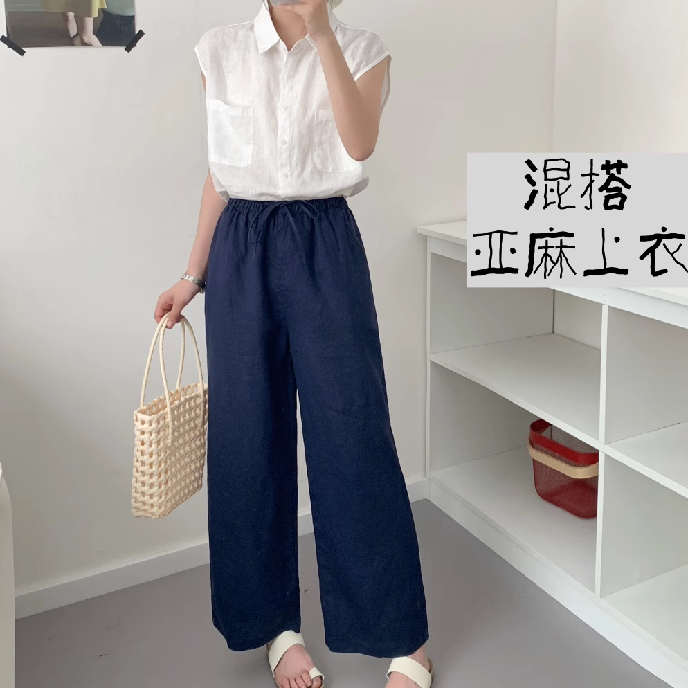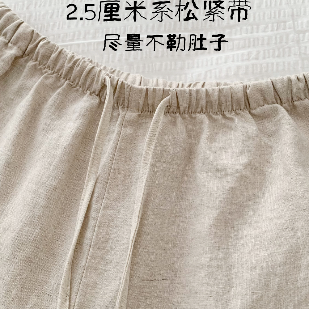 2025新款 女夏季 100%亚麻老钱风休闲裤 棉麻透气 天然呼吸九分裤