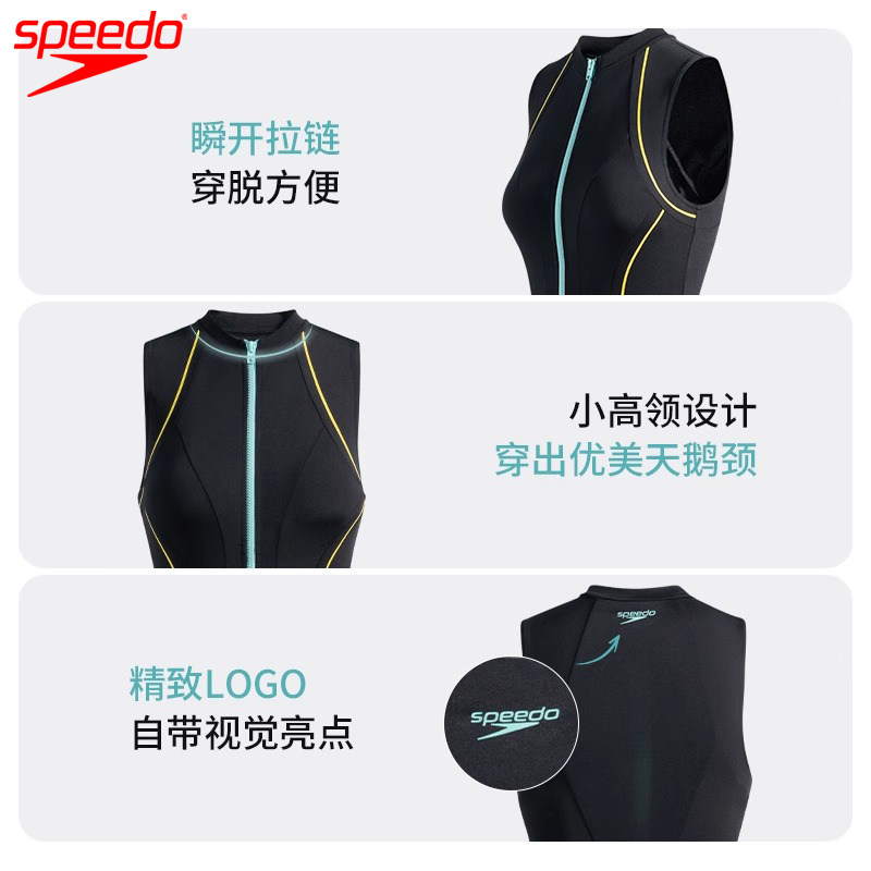 Speedo速比涛黑标6.0系列小高领防晒无袖 连体泳衣女士竞赛25新品