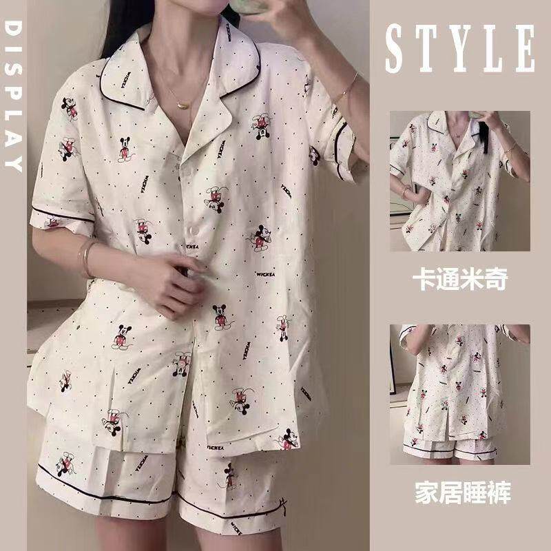 可外穿家居服套装 纱布学生少女KT猫短裤 夏 开衫 云朵纯棉睡衣女短袖