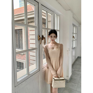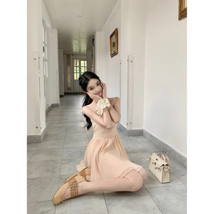 森女系原创想去海边 甜美温柔清楚系粉色长裙连衣裙 冬日信号
