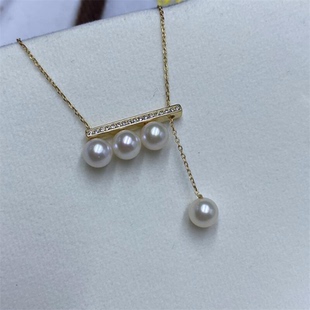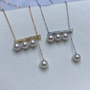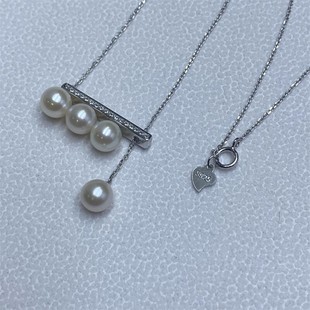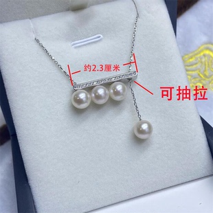 诸暨经典 7mm圆珠搭配s925银可抽拉吊坠项链 淡水珍珠平衡木项链6