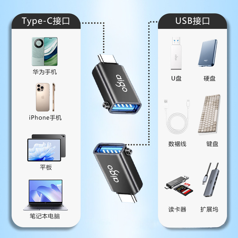 笔记本 电脑 手机优盘转接头 iPad 爱国者otg转接头typec转usb3.0多功能手机U盘转换器适用苹果