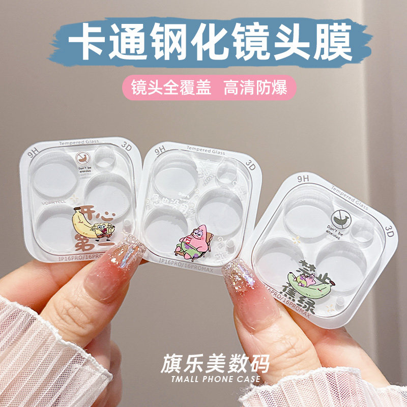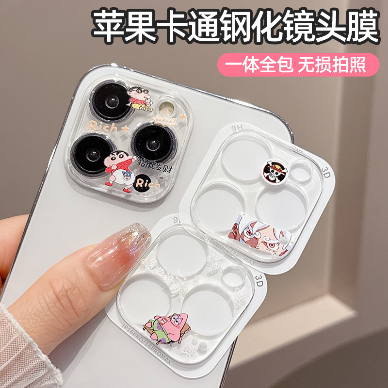适用苹果17promax卡通透明镜头膜17pro可爱镜头保护贴iPhone15 13Mini镜头圈16plus后摄像保护膜Air防摔膜