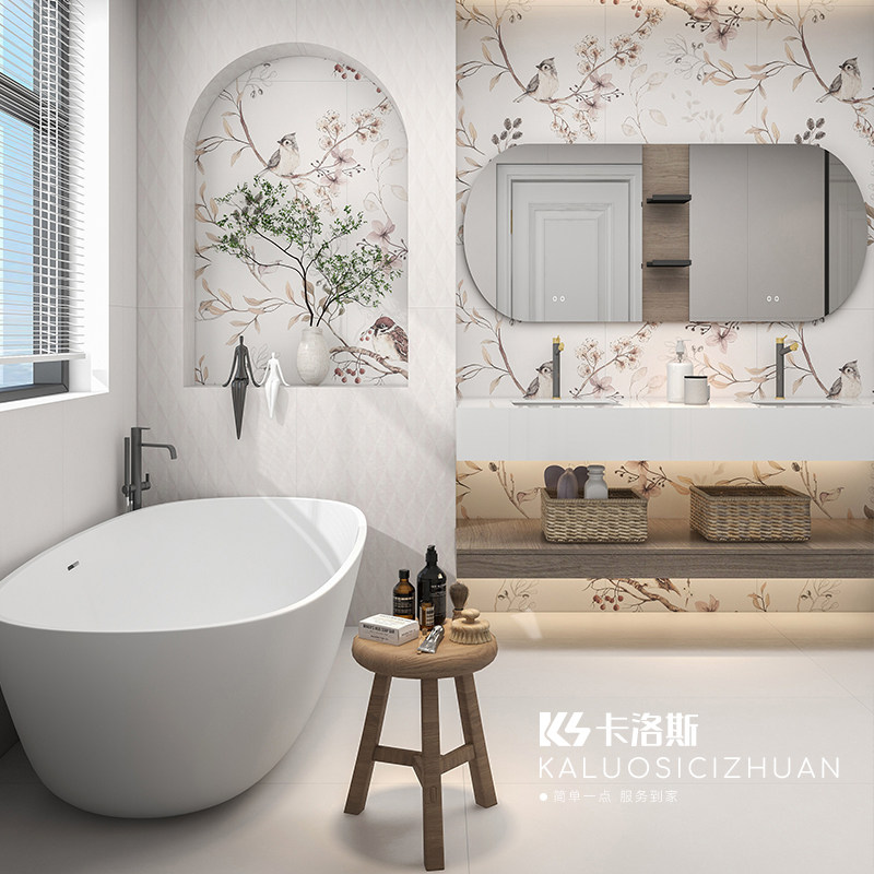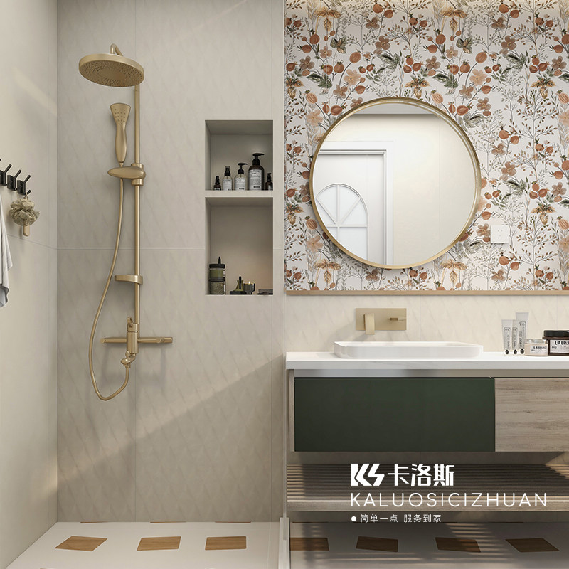 法式 侘寂风花砖600x1200卫生间瓷砖厨房浴室墙砖微水泥地砖奶白色