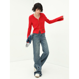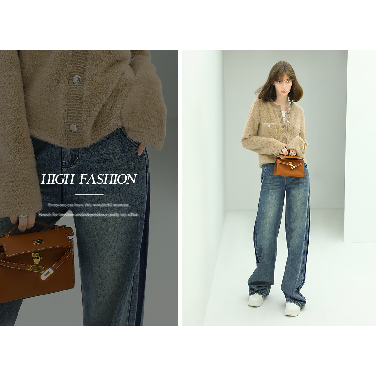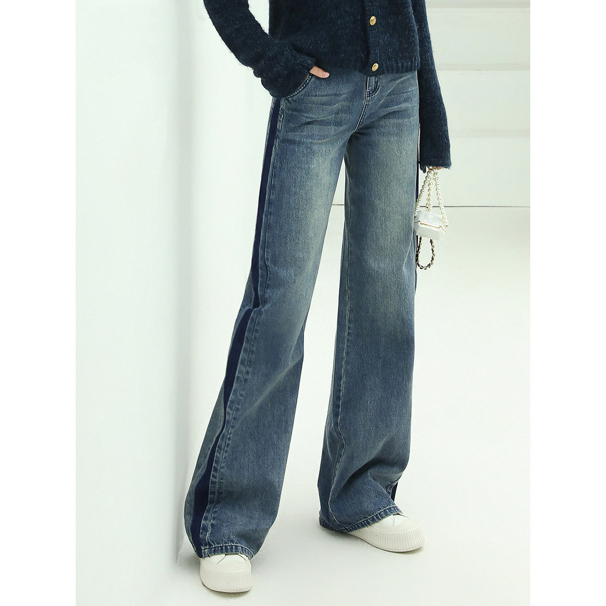 阔腿裤 女撞色休闲裤 COCOBELLA拼色水洗直筒牛仔裤 DN26 3件5折