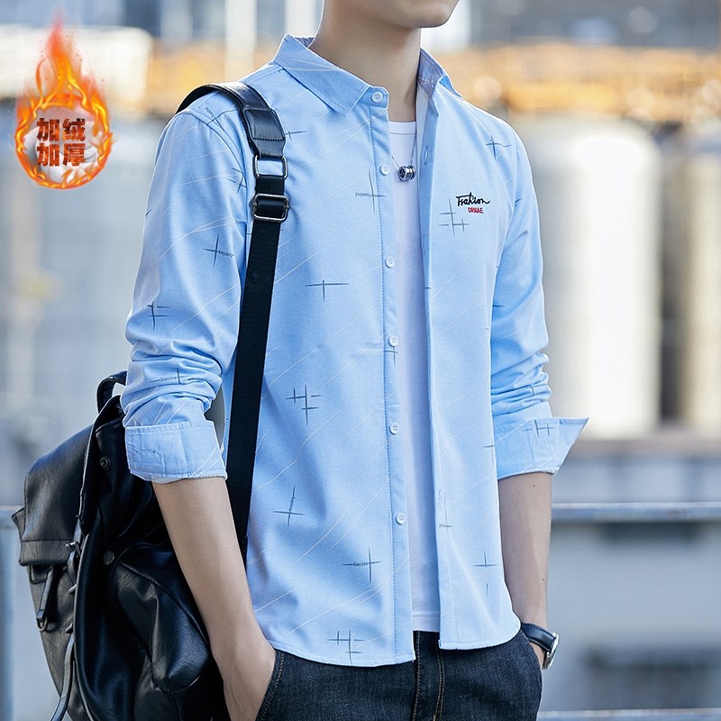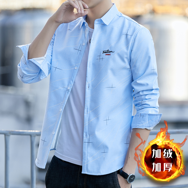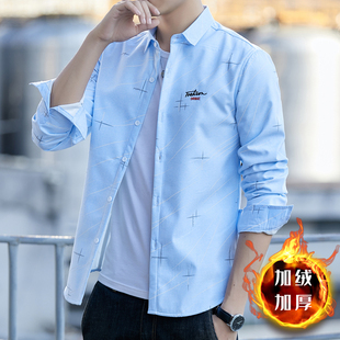 宽松休闲纯色长袖 秋季 上衣外套 男生2025新款 蓝色翻领水洗牛仔衬衫