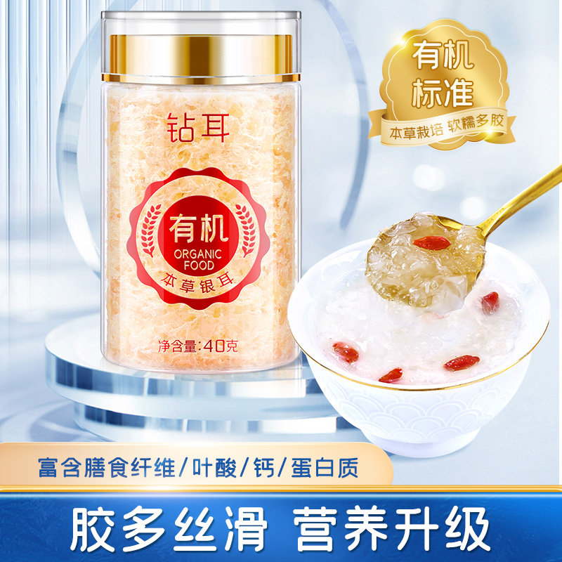 富昌钻耳有机本草雪花银耳干货40g古田碎糯耳焖泡即食冲泡早餐