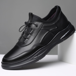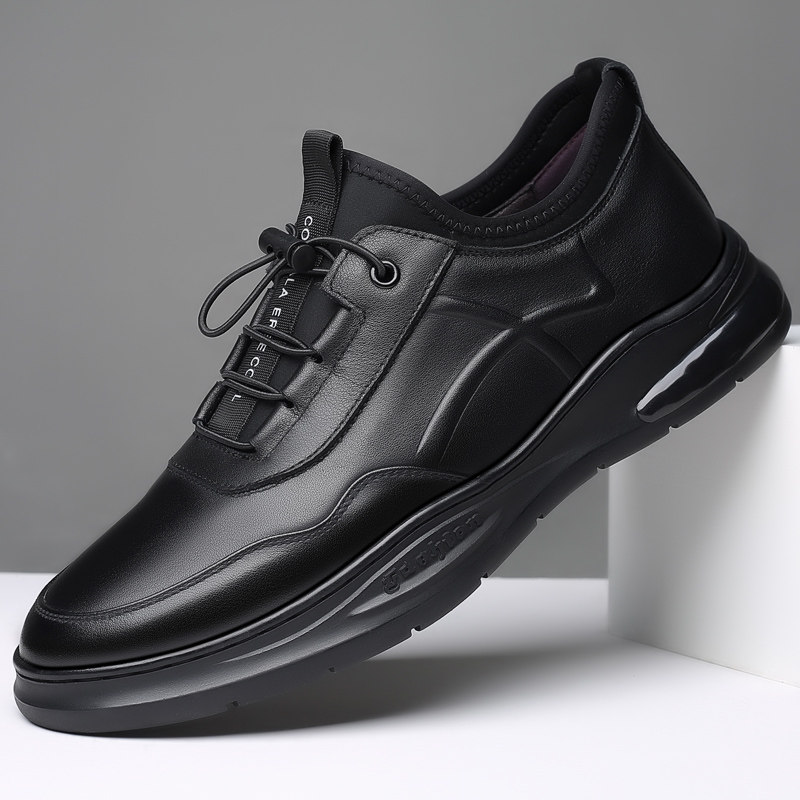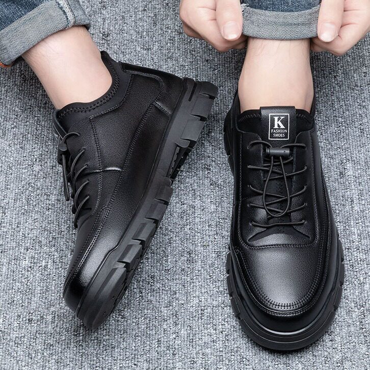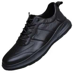 防水上班4546大码 透气软底防滑工作鞋 软皮鞋 黑色皮面运动休闲板鞋