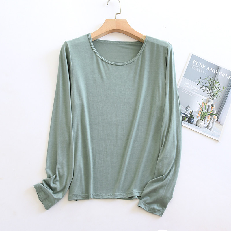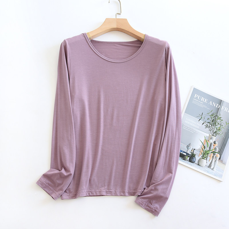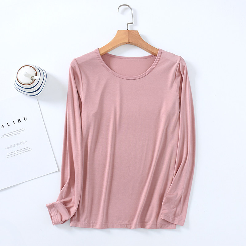 内穿圆领长袖 薄款 保暖内衣上衣单件 春秋夏季 莫代尔秋衣女士打底衫