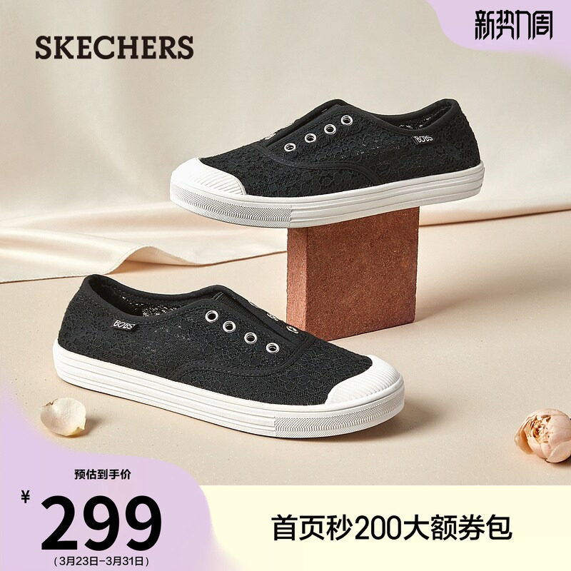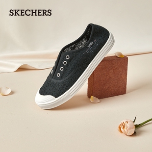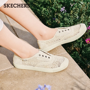 复古休闲鞋 斯凯奇舒适百搭女鞋 平底时尚 好看蕾丝一脚蹬板鞋 小白鞋