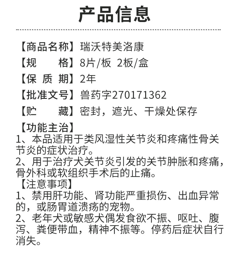 瑞沃特美洛昔康片狗猫止疼药绝育骨折关节炎术后止疼宠物止痛药