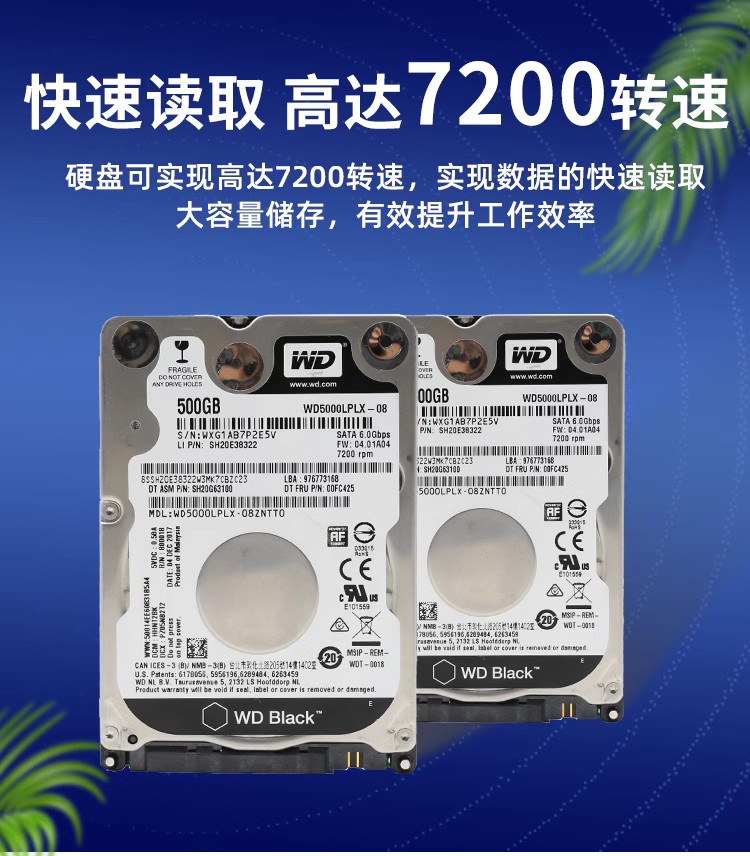 2.5寸7200转320G 黑盘企业级黑盘 500笔记本电脑硬盘 西部数据