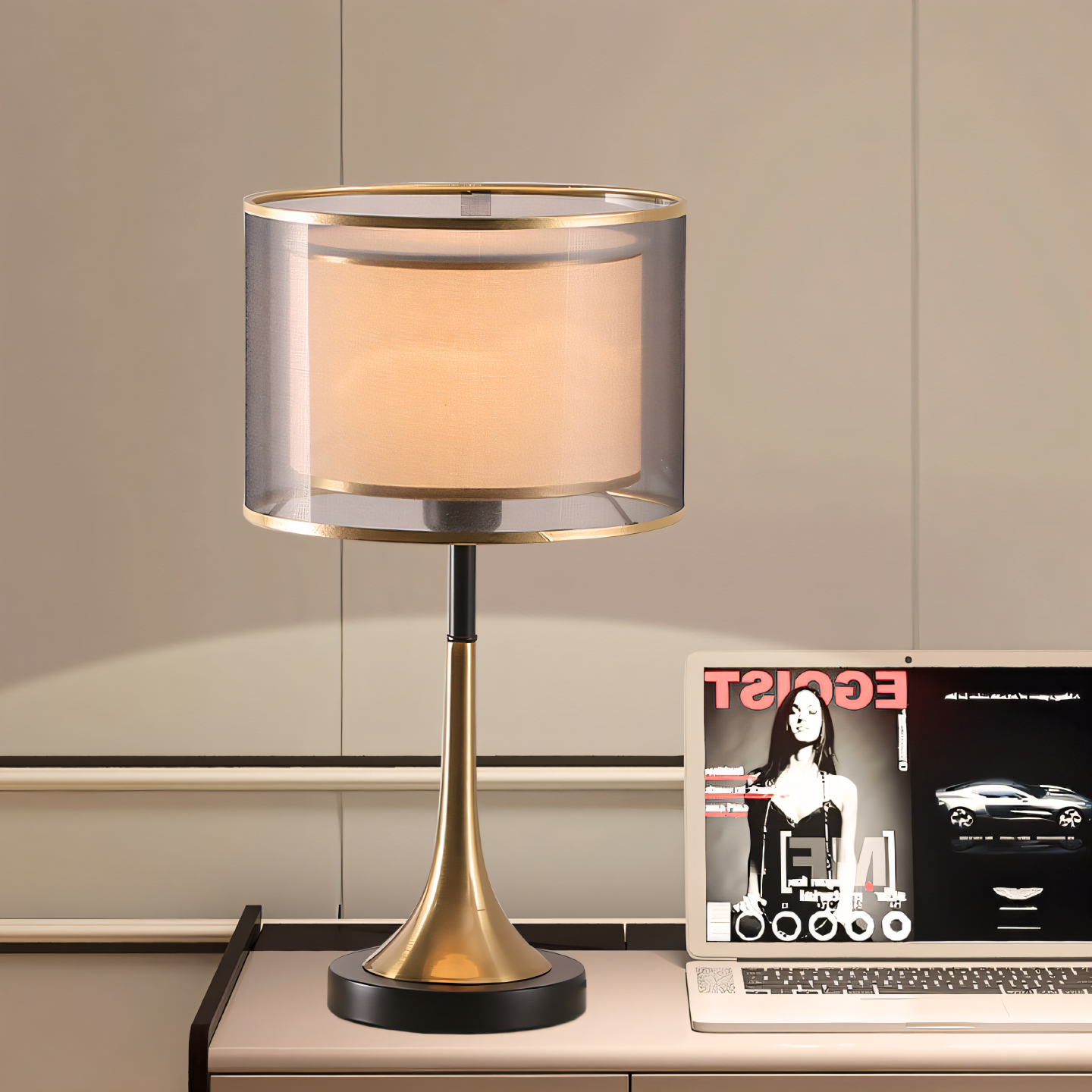 中古侘寂风台灯美式 饰灯 复古卧室书房床头灯温馨触摸感应创意装
