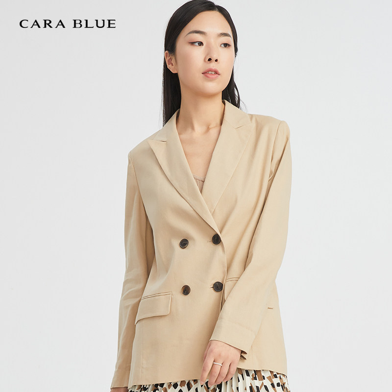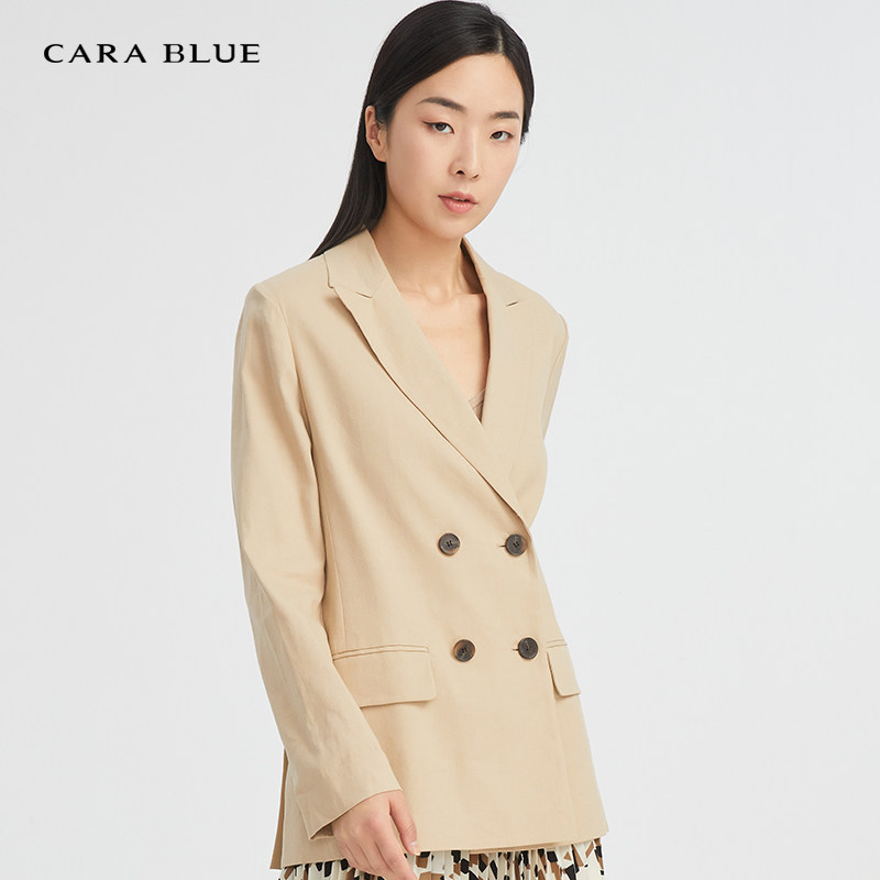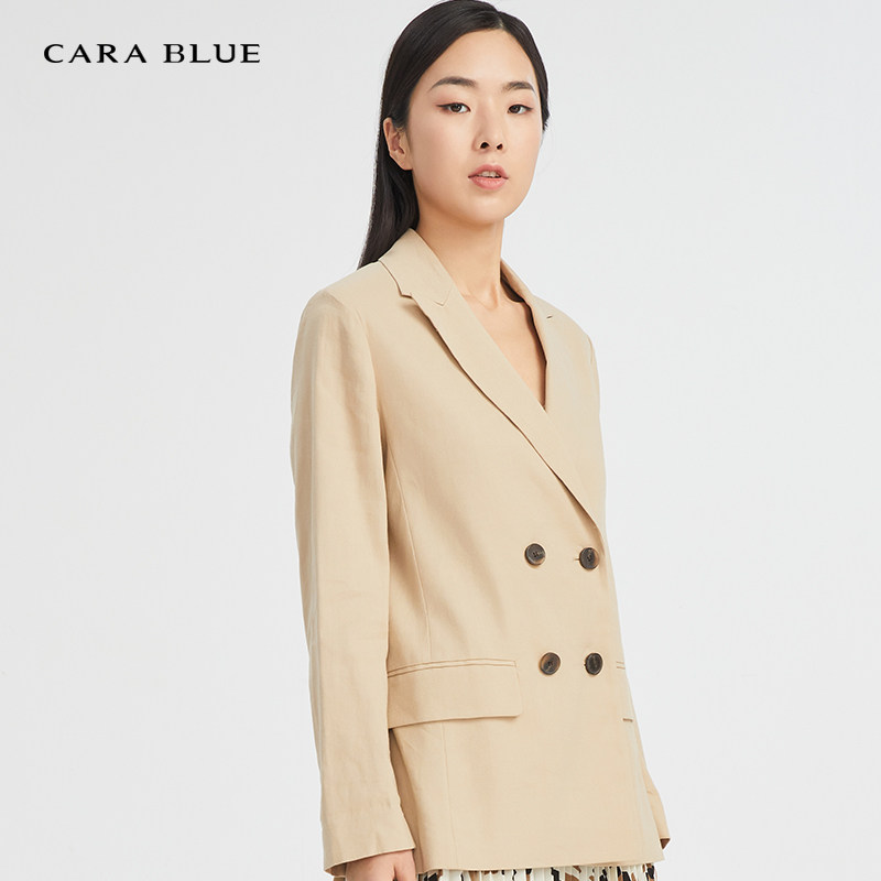 时尚 cara 女上衣 喀啦 双排扣气质简约通勤西服KB201MWJ0244 blue