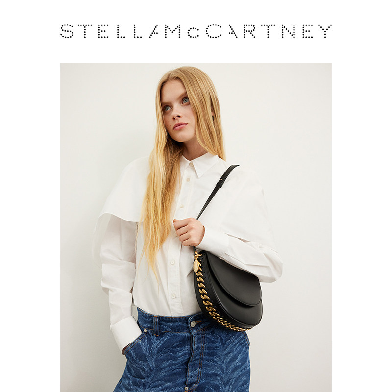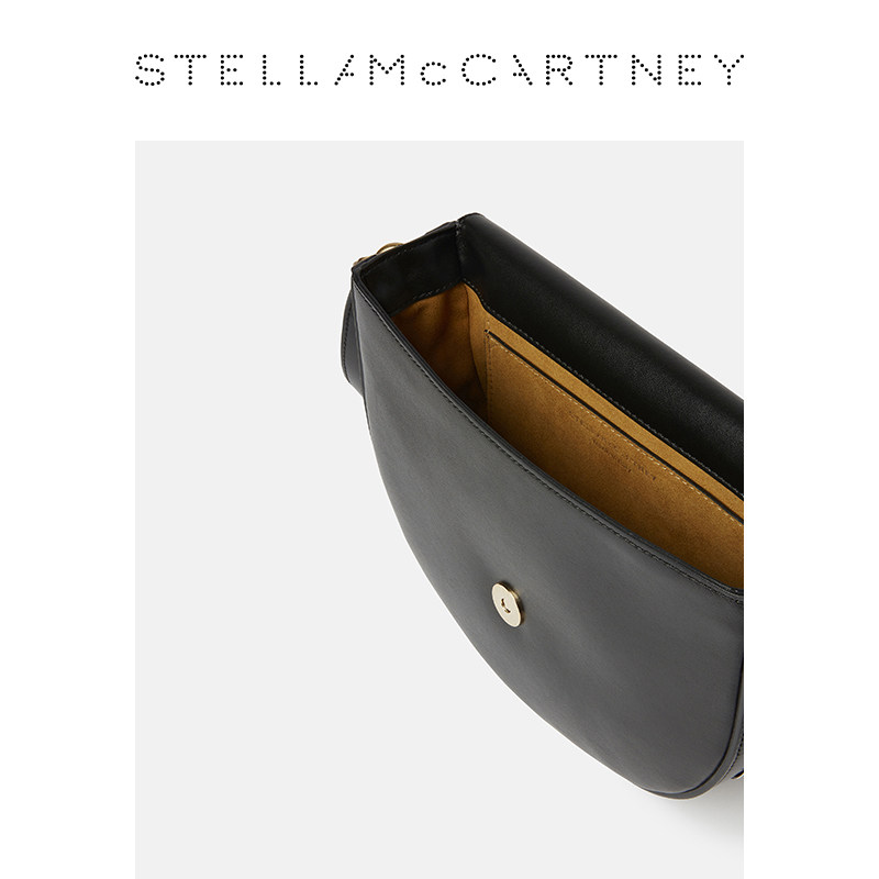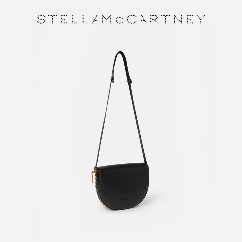 Stella FRAYME McCartney银色链饰黑色中号斜挎马鞍包 限时降价
