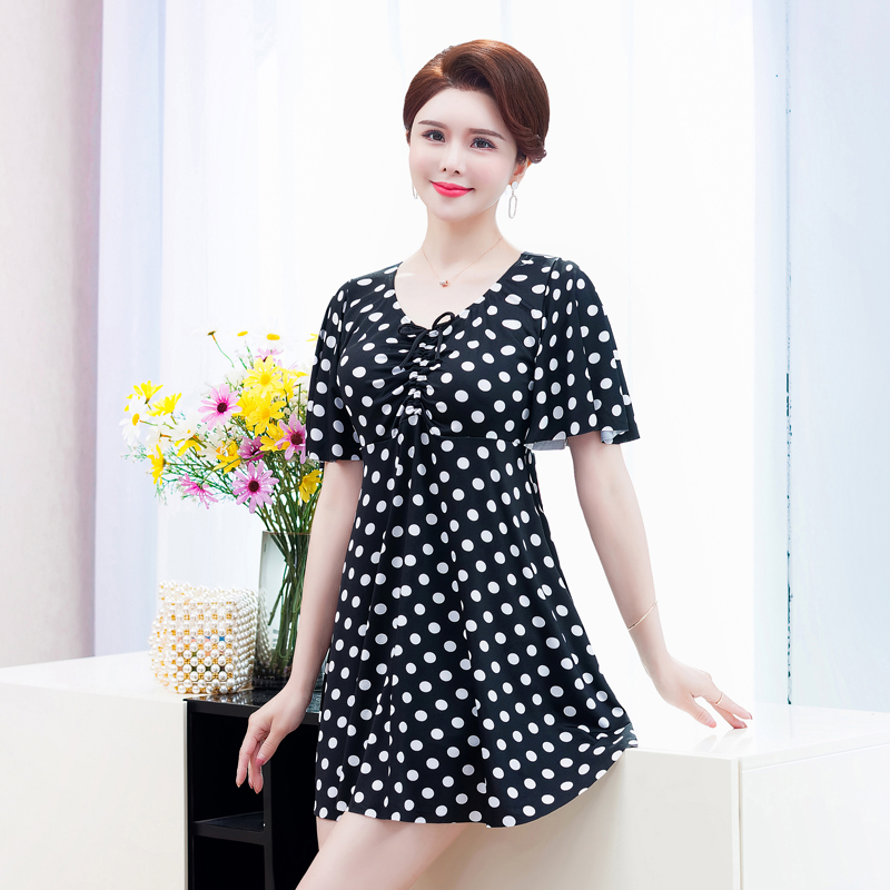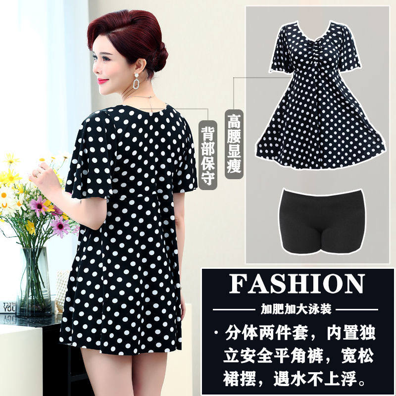 遮肚显瘦泡温泉中老年短袖 大码 裙式 保守分体平角裤 妈妈泳衣女时尚