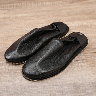 一脚蹬折叠鞋 2022懒人夏季 套脚软底豆豆鞋 休闲皮鞋 男 头层牛皮男士