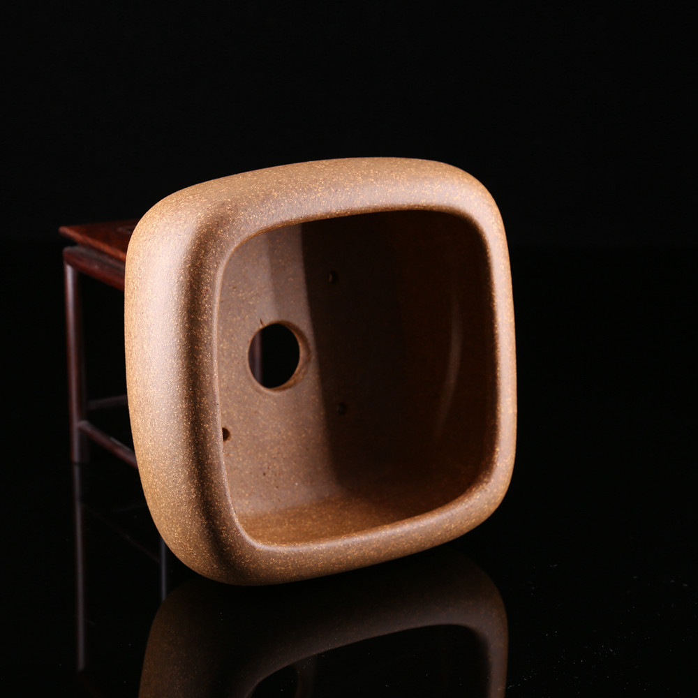 微型小号高档精品名家许成安宜兴原矿段泥浑元 四方窝口紫砂盆景盆