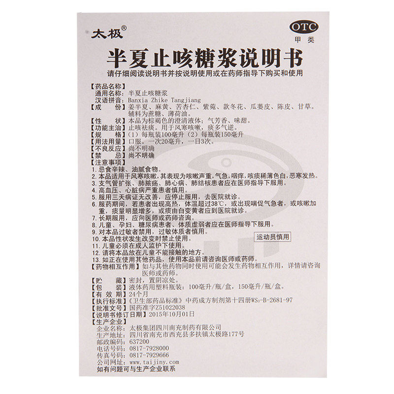 太极 止咳祛痰wj 半夏止咳糖浆150ml