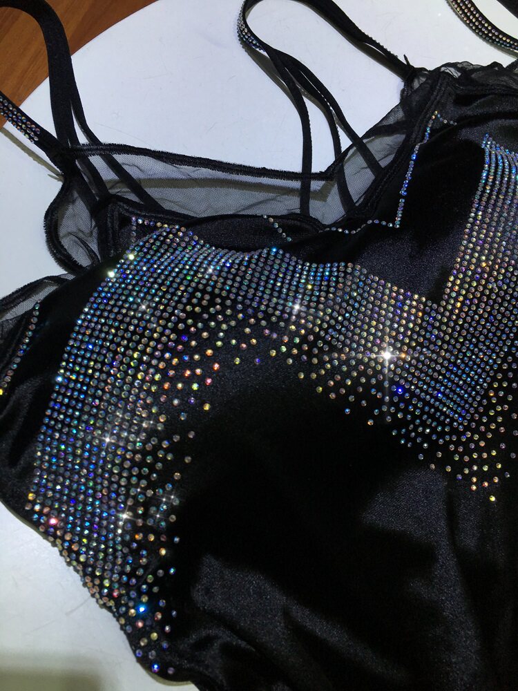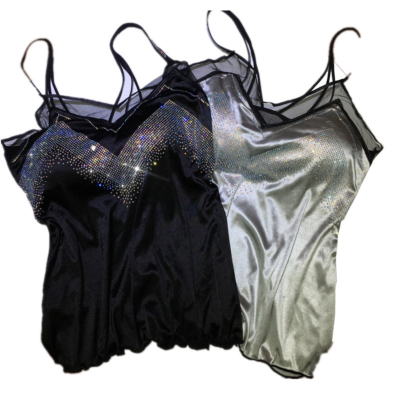 重工烫钻吊带背心女夏季 显瘦性感丝滑裹胸上衣内搭带胸垫 蕾丝修身