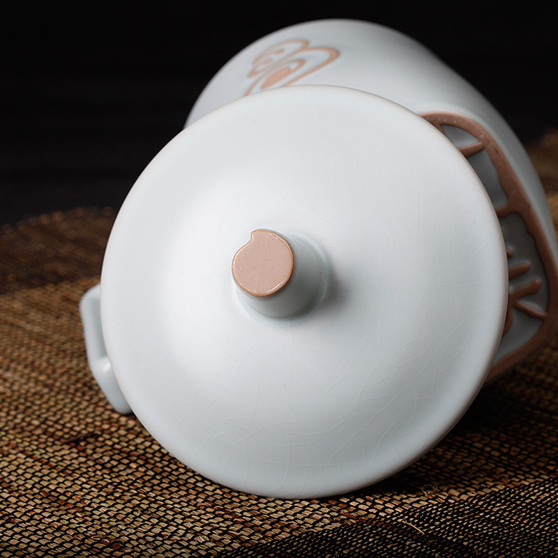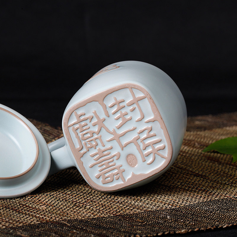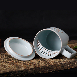正品 东道汝窑茶杯封侯个人杯高档开片马克杯办公自在杯龙井绿茶杯