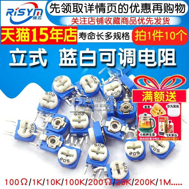 2K202 立式 100K 1K102 200欧500欧 蓝白可调电阻10K103