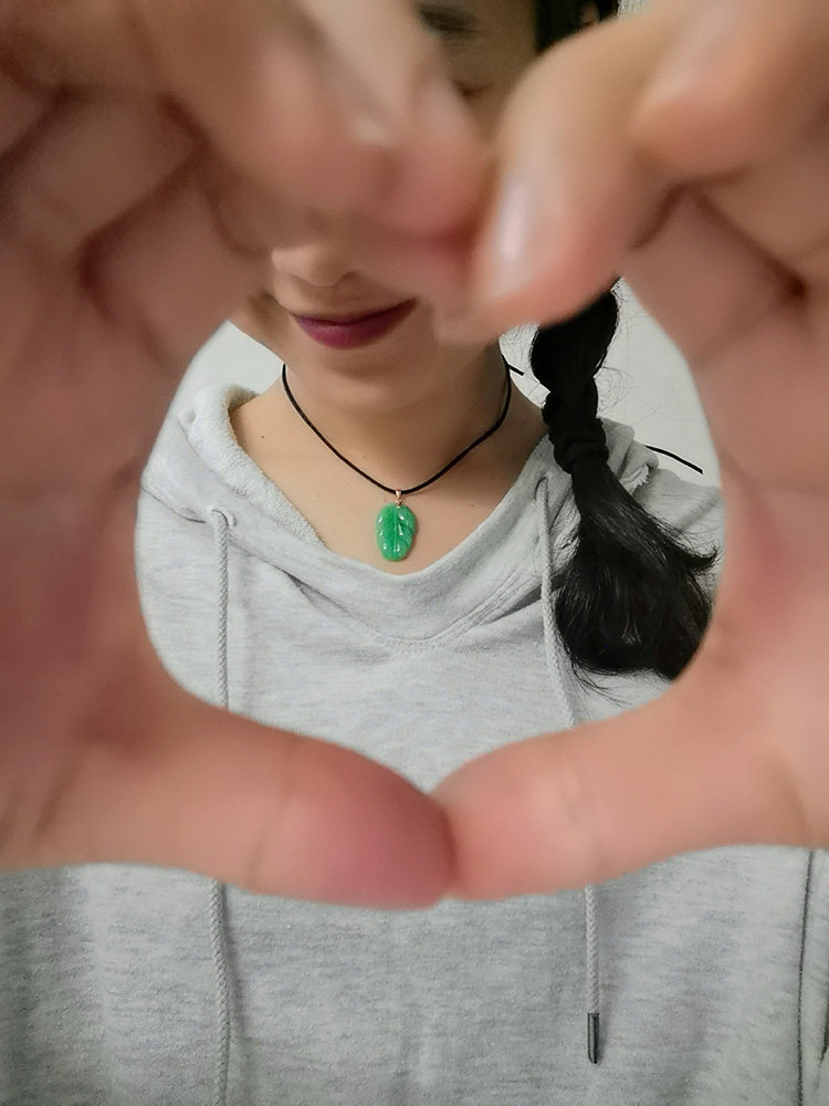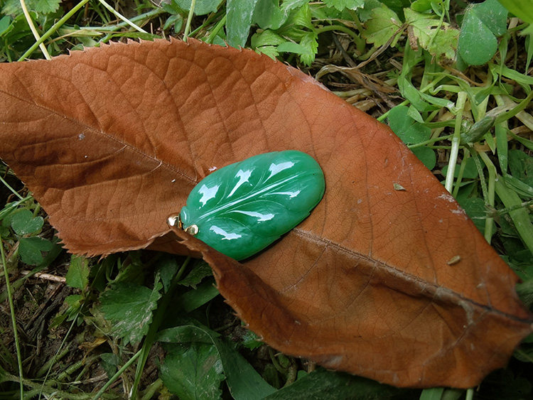 18K金扣头女款 翡翠A货满绿叶子吊坠 天然玉石 凡时素念 一叶