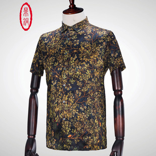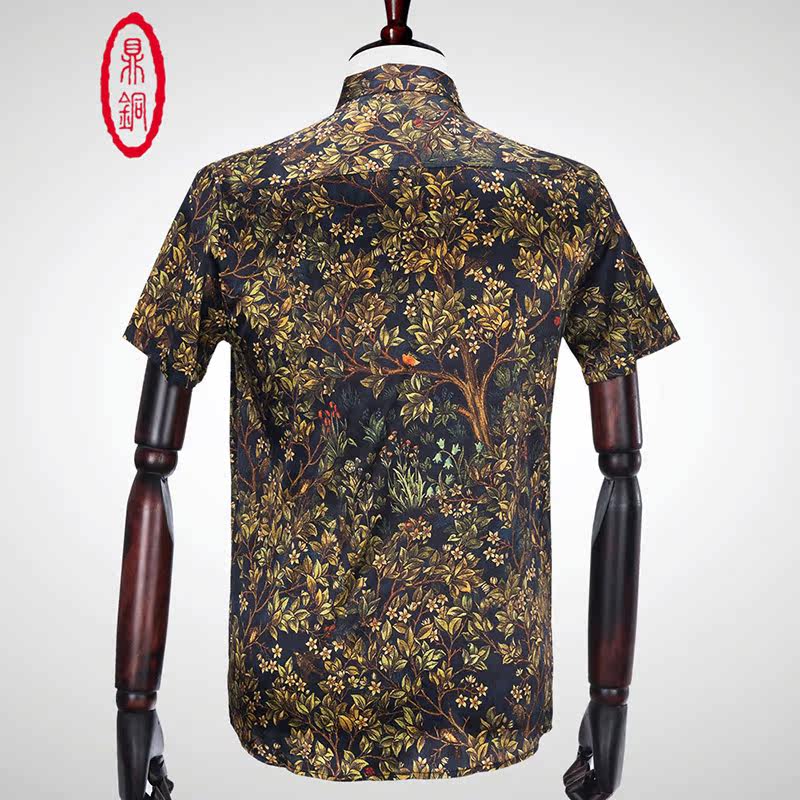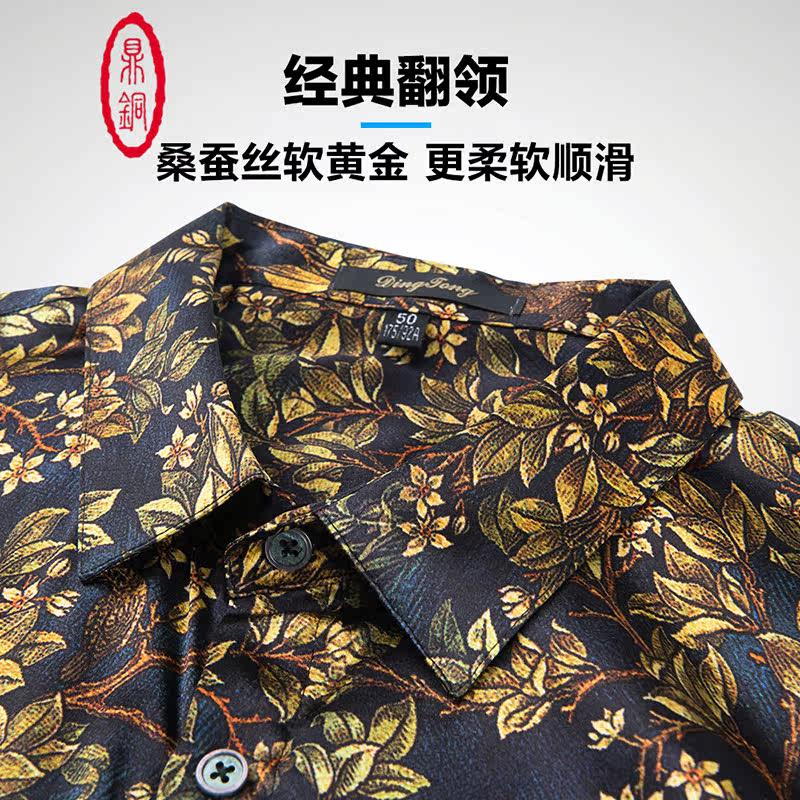 夏季 衬衫 薄款 潮流衬衣真丝休闲花寸衫 鼎铜男士 翻领韩版 桑蚕丝短袖