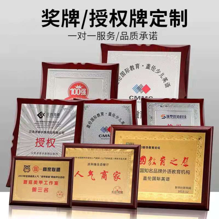 定制奖牌授权牌金箔沙金铜牌木质证书定做不锈钢牌公司荣誉牌牌匾