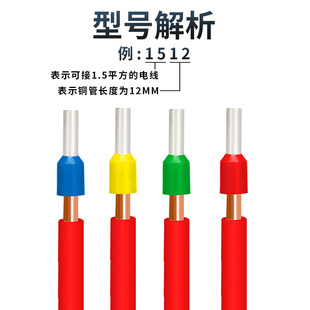 插针管型端子接线端子铜鼻子针型端子 端子冷压 1000只 欧式 E1512