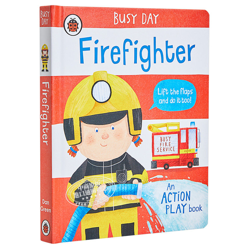 英文原版 Busy 低幼亲子启蒙机关操作书 小瓢虫职业机关书 中商原版 Firefighter ladybird操作书 Day 消防员 4岁 纸板书