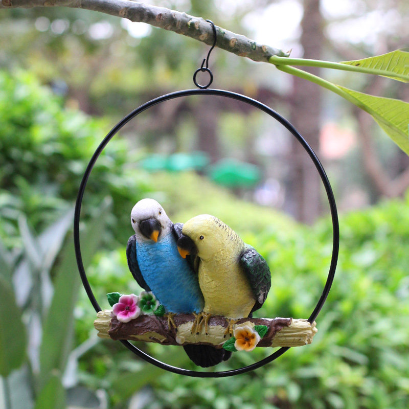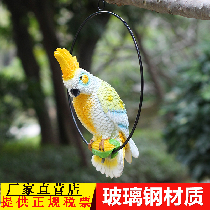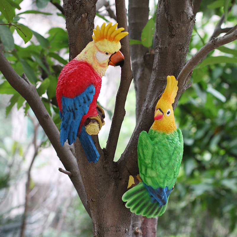 仿真鹦鹉树脂雕塑户外别墅花园庭院小鸟模型动物摆件树上装 饰挂件