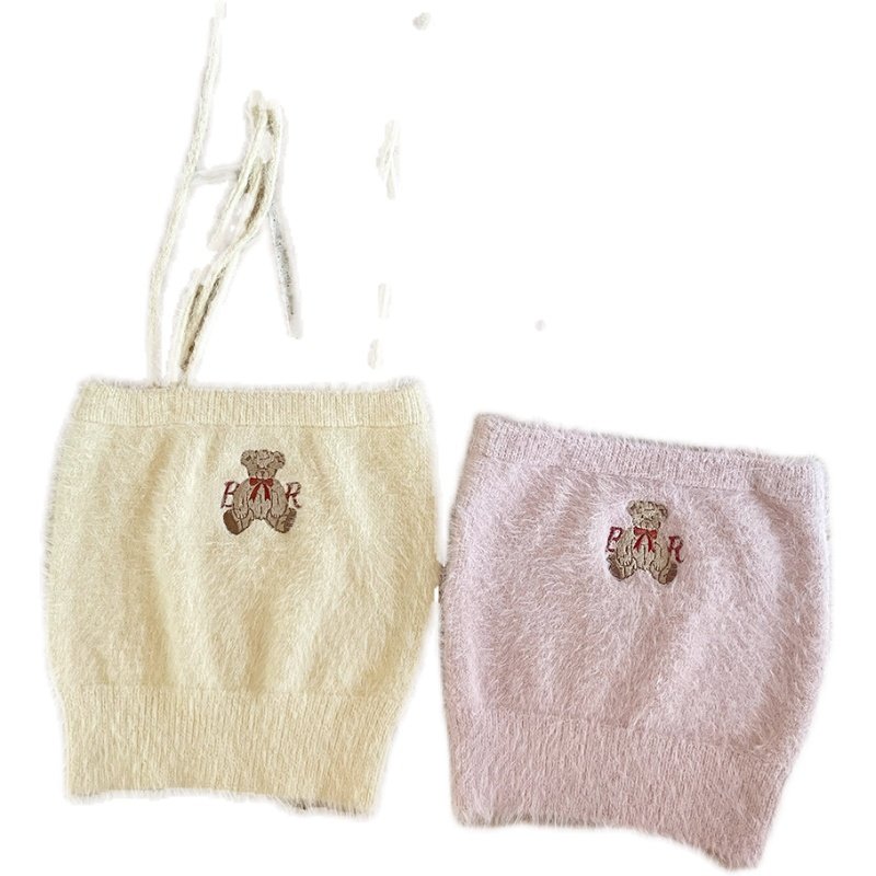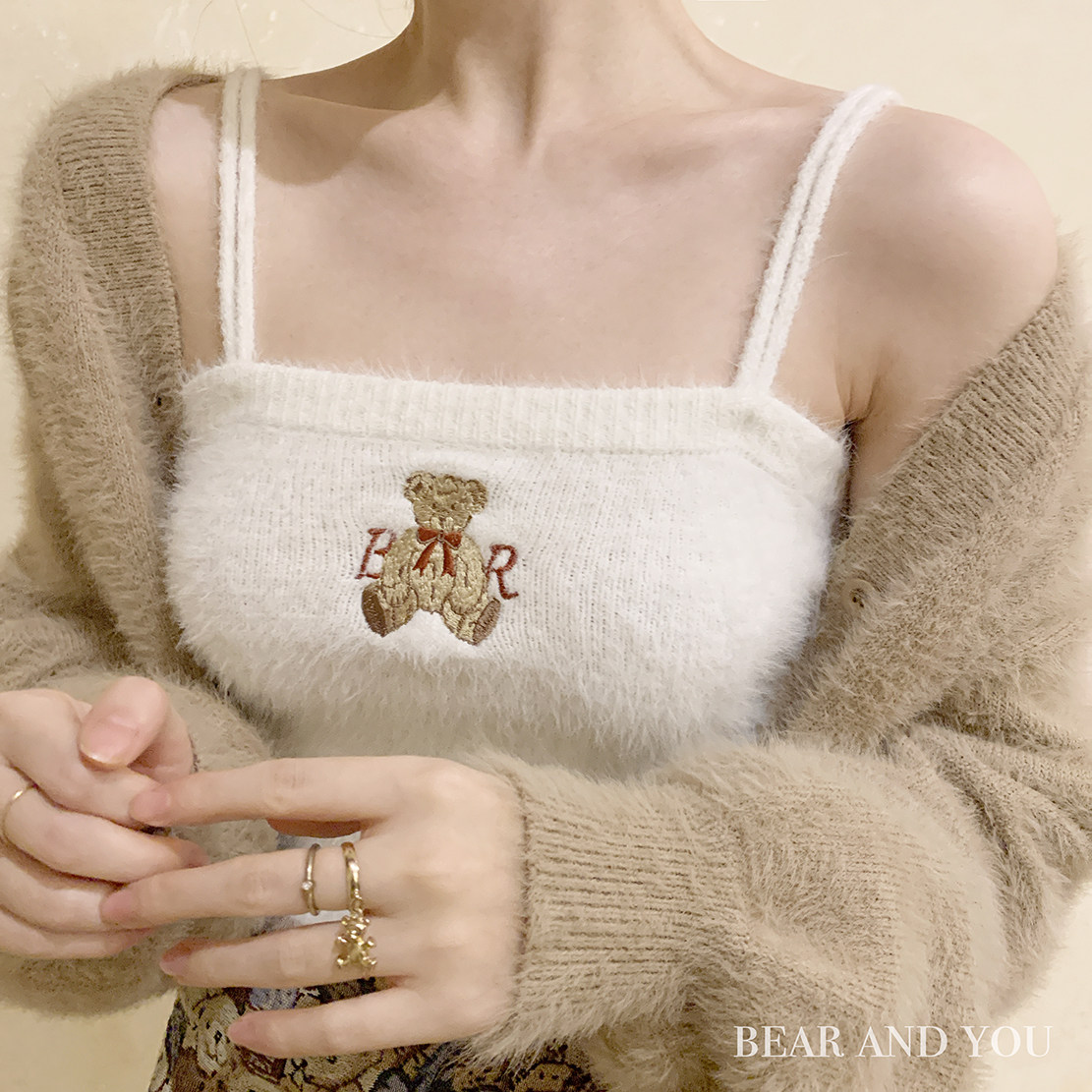 法式 米白V领蕾丝吊带背心女秋冬磨毛一体带胸垫保暖内衣打底上衣