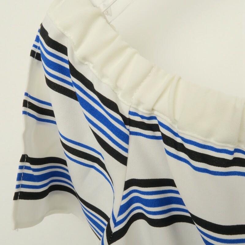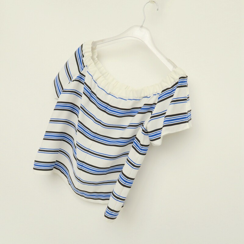 8B2306 女夏蓝条纹乔其宽松一字露肩短衬衫 拉系列S L专柜断码
