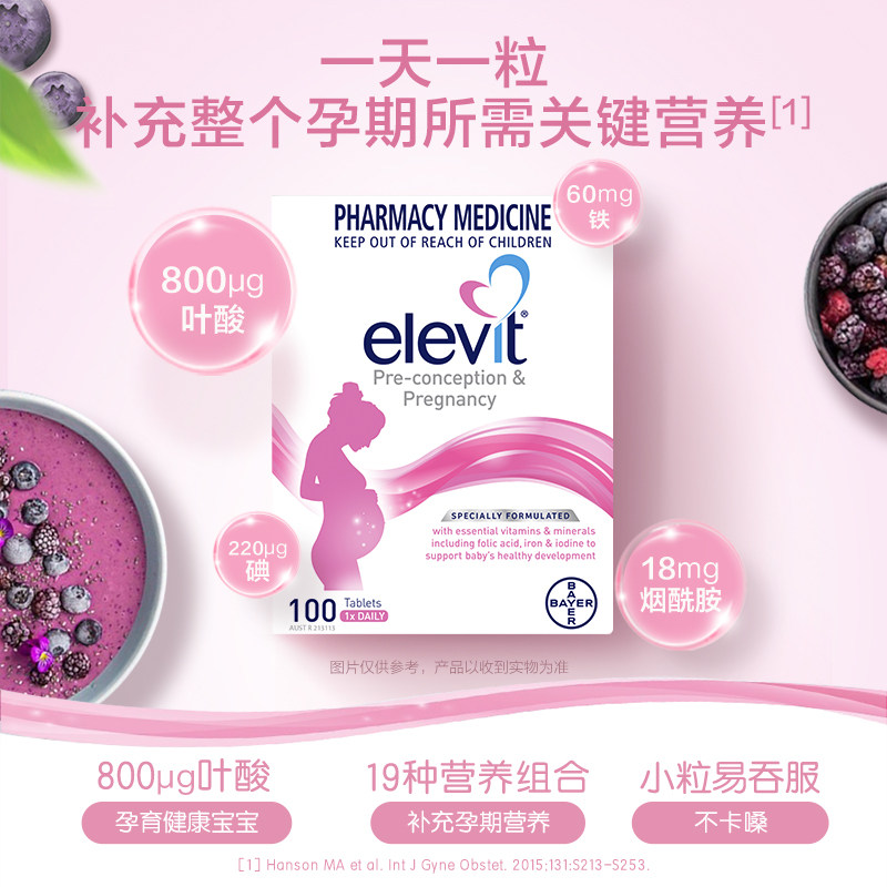 澳洲Elevit爱乐维孕妇专用复合维生素叶酸怀孕哺乳期100粒 盒正品