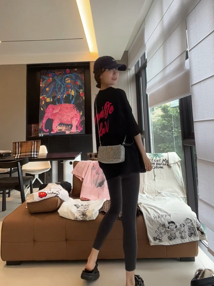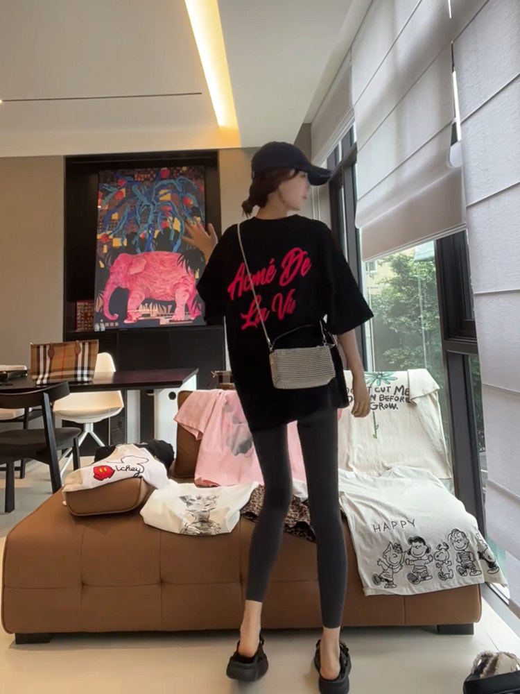 下衣失踪纯棉休闲情侣短袖 T恤圆领字母简约印花中长款 潮 新款 夏季