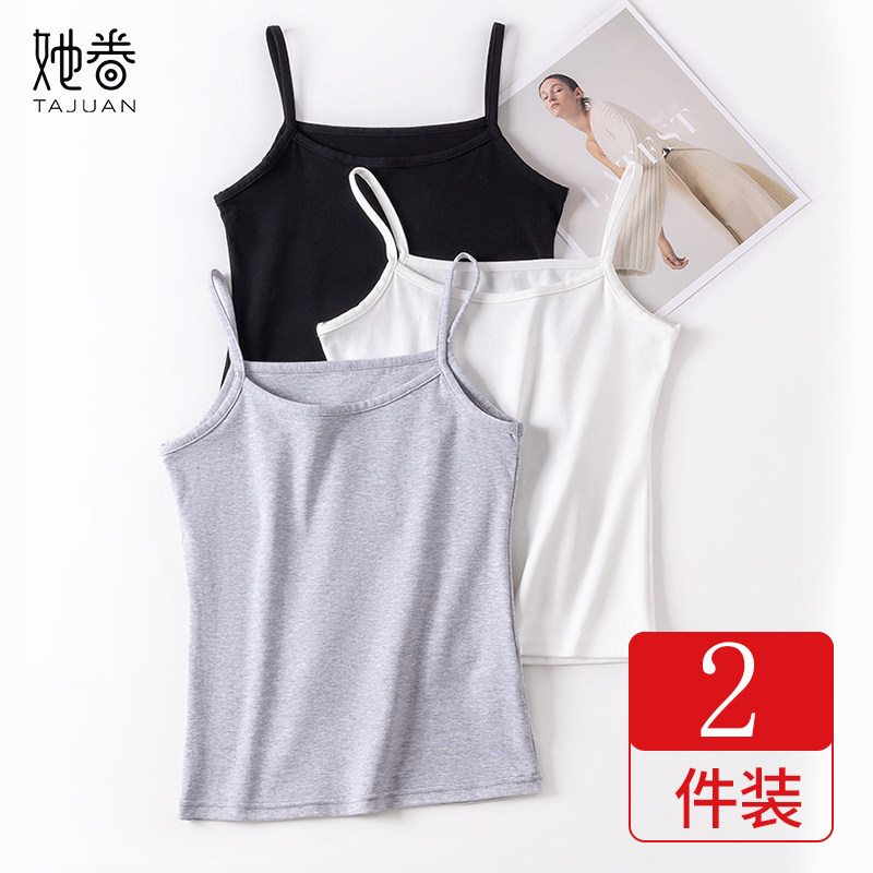 上衣 外穿内搭白色打底带胸垫美背无袖 纯棉吊带背心女2025新款 夏季