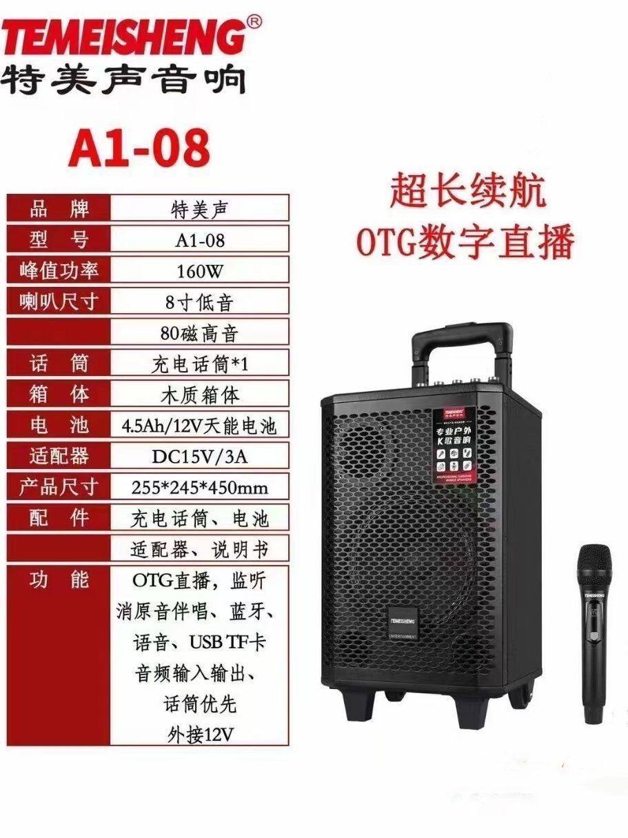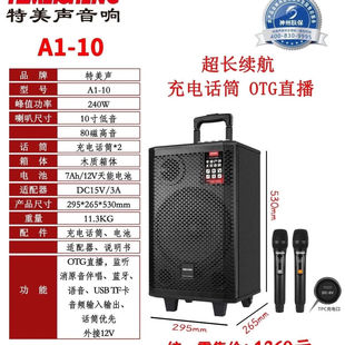10寸蓝牙音箱 8寸 特美声A1 08移动电瓶广场舞直播声卡音响