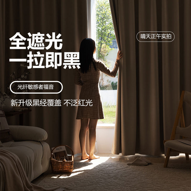 不泛红高温定型雪尼尔窗帘全遮光2025新款 奶油风绍兴柯桥全屋定制