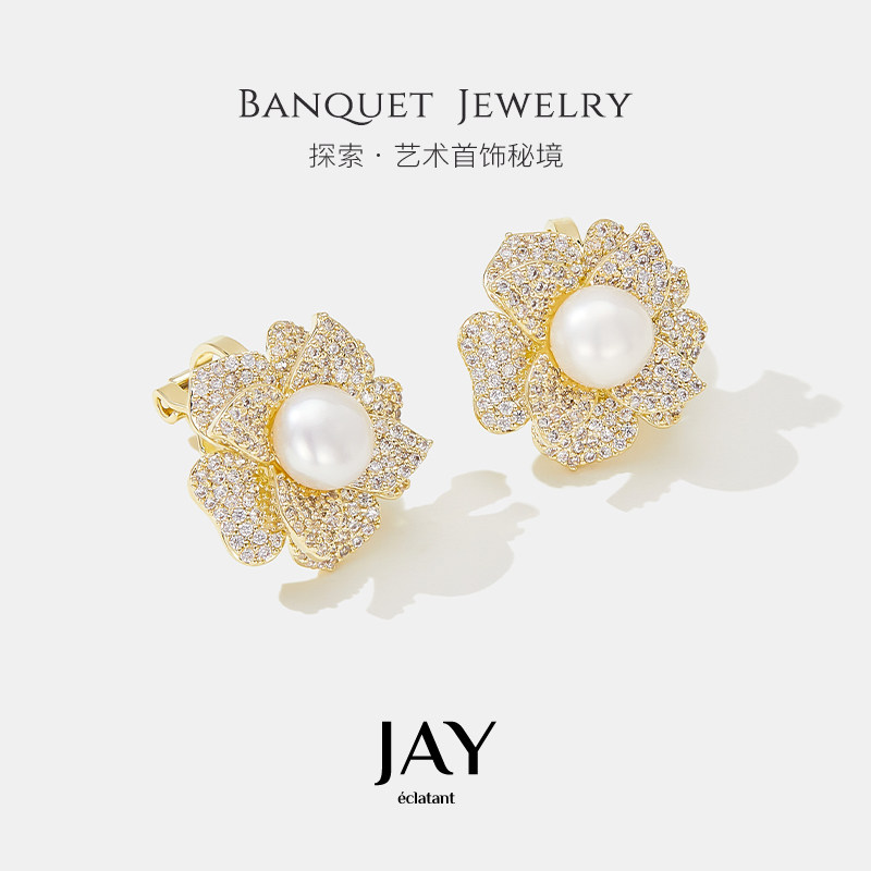 ZEGL人造珍珠耳钉女轻奢高级耳夹气质大耳环银针新款 精致耳饰 爆款