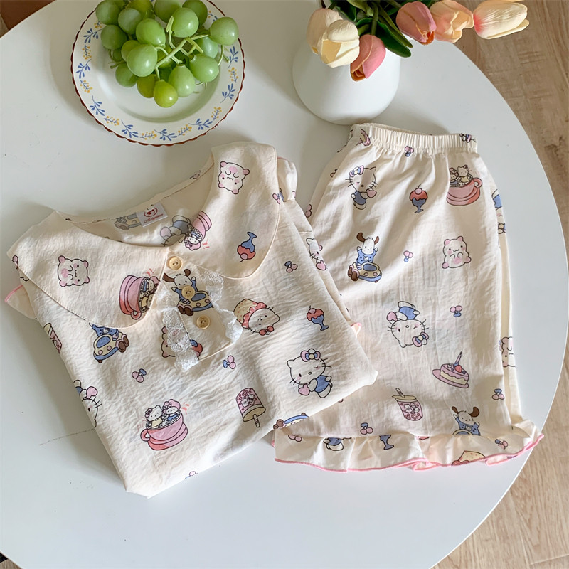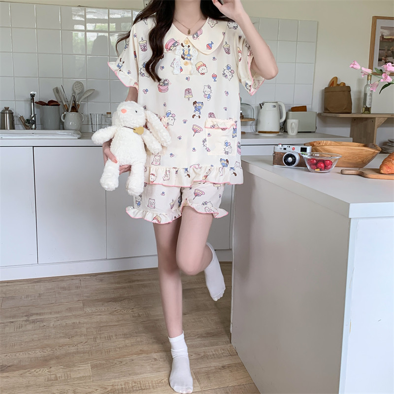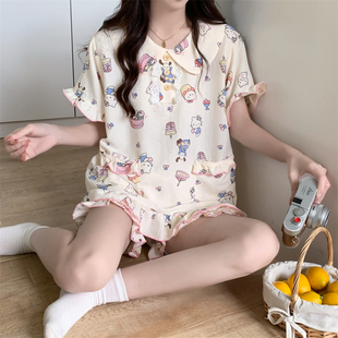 套装 长袖 浅蓝色甜美可爱家居服 带胸垫保暖开衫 德绒睡衣女秋冬新款
