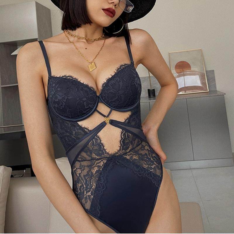魅惑性感连体内衣内裤 性感吊带超薄蕾丝塑身绑带深V文胸罩 一体式