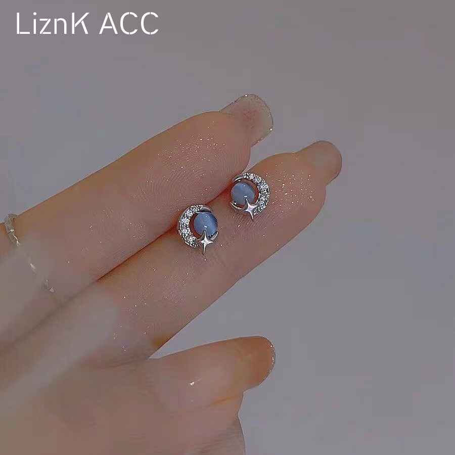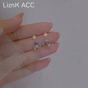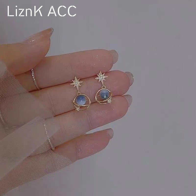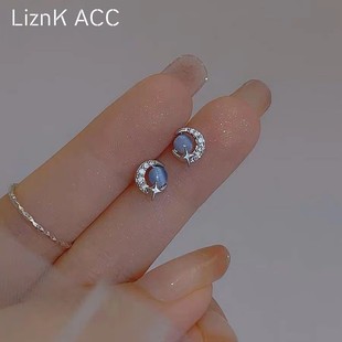 蓝色月亮星球耳钉2024新款 轻奢小巧小众气质耳环女耳高级感饰 爆款