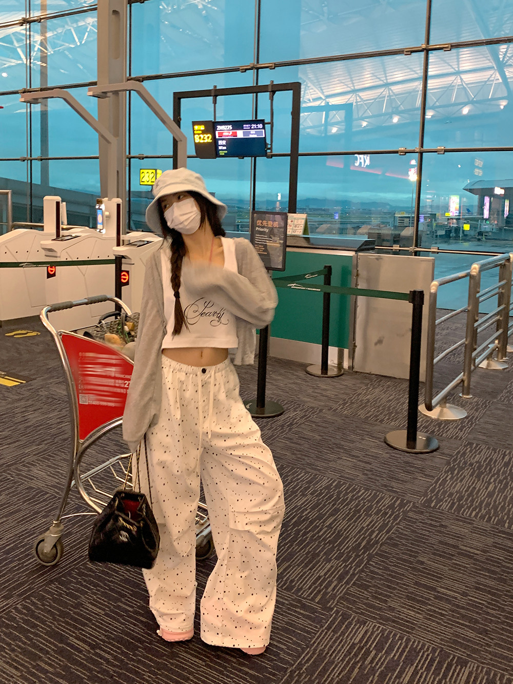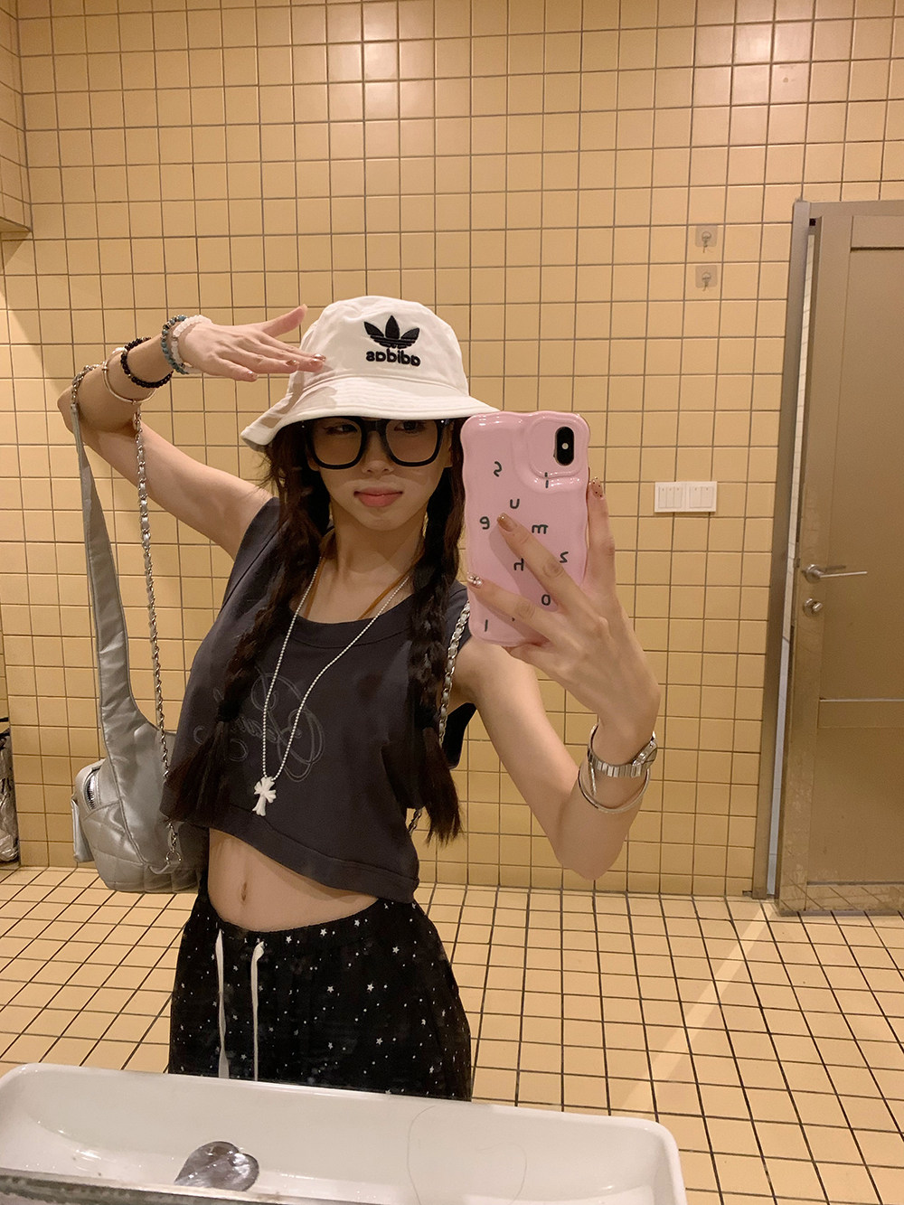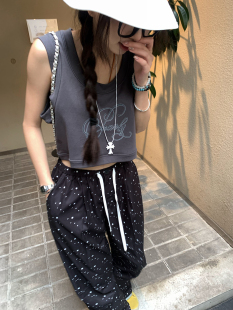 新款 宽松背心2025夏季 U领小心机露脐上衣女潮 字母印花短款 荒荒家