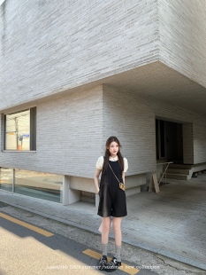 宽松减龄口袋连体背带裤 按扣黑色连衣短裤 福耶尔书店 aaaaxbbb