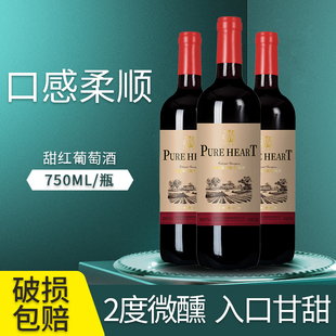 半甜红葡萄酒甜型红酒女士睡前晚安酒12度果酒微醺低度干红热红酒
