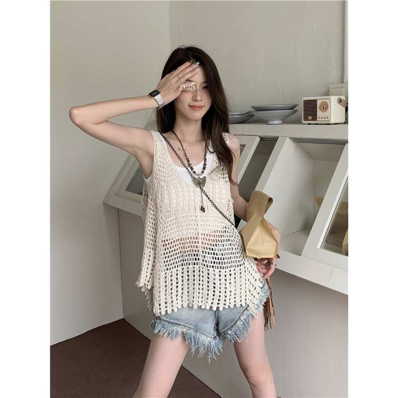夏季 镂空外搭罩衫 女装 2024新款 搭配一整套出游穿搭 背心上衣套装