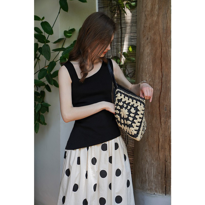 miorastudio法式 高级感上衣 复古小众设计感斜领黑色针织背心